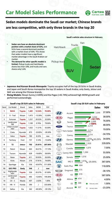 يستعرض هذا التقرير جوانب متعددة من سوق السيارات في المملكة، ويحلل أنماط التفضيل لدى المستهلك، وبنية السوق، والتوزيع السعري، وكذلك اتجاهات البحث على الإنترنت، بهدف توفير رؤية استراتيجية للعلامات الصينية الراغبة في كسب موطئ قدم تنافسي.